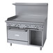 - 48" griddle top with (4) 18,000 BTU burners, 5/8" thick griddle plate and 23" working depth