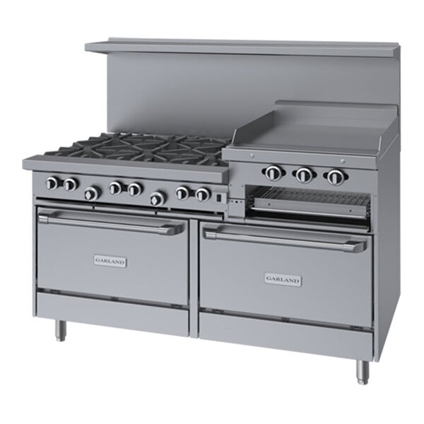 Garland G60-6R24RC Natural Gas 6 Burner 60" Range with 24" Raised Griddle / Broiler, 1 Standard Oven, and 1 Convection Oven - 307,000 BTU