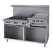 Ergonomic, split cast iron grates let you easily slide heavy pots from one section to another. To evenly cook and broil meats, vegetables, and more, its 24" raised griddle / broiler section has a 5/8" thick steel griddle plate and 3 cast iron burners, each delivering 18,000 BTUs.