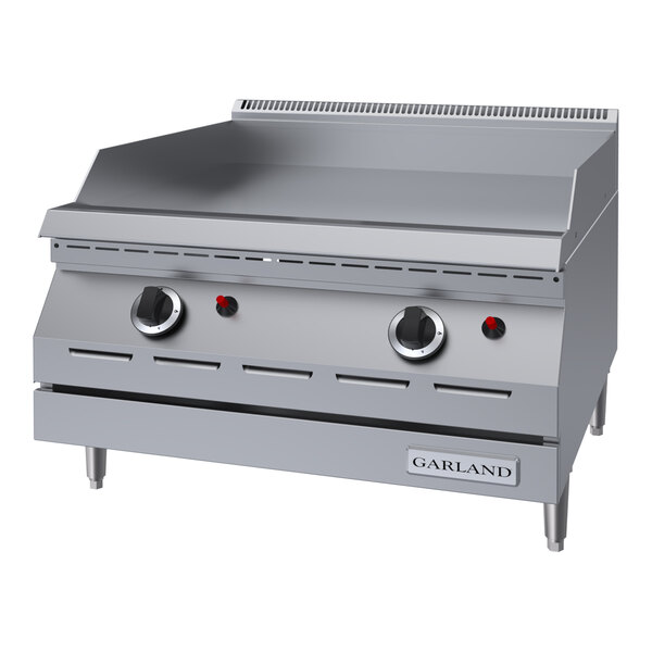 This Garland GD-24G 24" countertop griddle features a piezo spark ignition, 4" sanitary legs, and an 18" deep cooking surface, so you'll have plenty of room to whip up all of your customers' favorites.