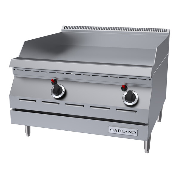 As part of the Designer Series, this Garland GD-24GFF natural gas 24" countertop griddle is equipped with a 1/2" polished steel griddle with 2 5/8" welded splashguards on the sides and rear of the plate to protect your walls, counters, and floors from accidental spills. The unit is powered by 40,000 BTUs of cooking power across its 24" width, and manual hi-lo valve temperature controls allow you to control the cooking temperature, so you'll be able to make necessary adjustments no matter what you are cooking up. Plus, with its flame failure protection, the gas supply is automatically shut off when the flame goes out. This Garland unit features an eye-catching, easy-to-clean stainless steel construction that ensures durability and reliable service for years to come.