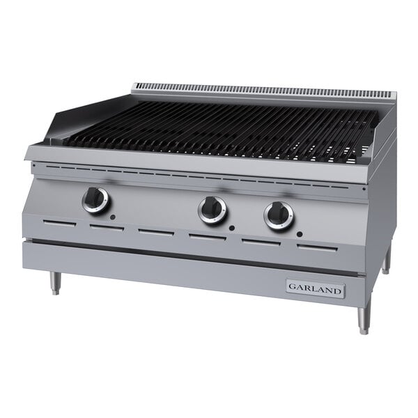 This Garland GD-30RB 30" countertop charbroiler features a piezo spark ignition, 4" sanitary legs, and an 18" deep cooking surface, ensuring that you'll have plenty of room to work and keep up with customer demands.
