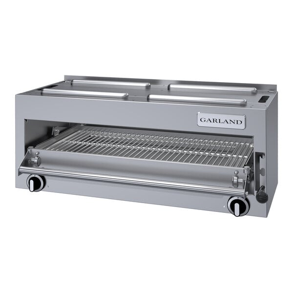 The Garland GIR36C countertop salamander broiler features a three-position, spring-balanced adjustable rack assembly to accommodate all your signature entrees and sides. It also has a removable grease pan for easy cleaning.