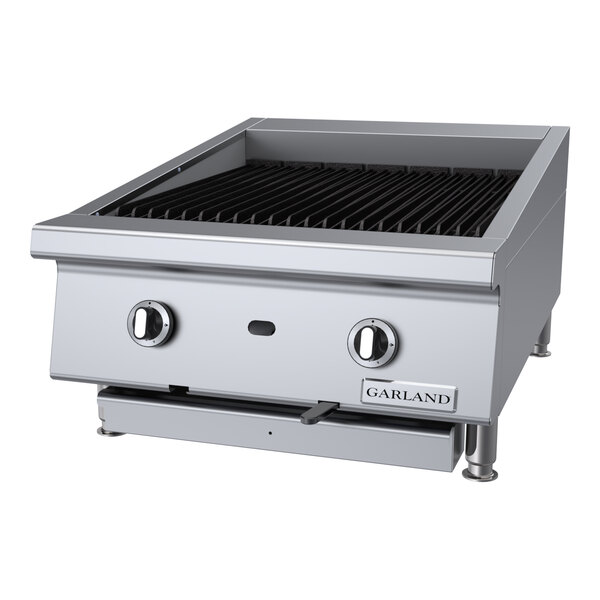 Perfect for the busiest snack bars or concession stands, the heavy-duty Garland GTBG24-AB24 liquid propane charbroiler delivers the power and durability of a full-size charbroiler in a compact, countertop construction! With its two 30,000 BTU cast iron burners, this powerful ceramic briquette charbroiler can heat from 300-660 degrees Fahrenheit. The Garland GTBG24-AB24 24" charbroiler has one high-low valve for each burner for an added measure of precision.