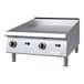 This 24" wide heavy-duty gas griddle features 2 "U" shaped, 27,000 BTU burners for powerful, even cooking. Its manual hi-lo style controls enable temperatures from 320 to 730 degrees Fahrenheit, while the Piezo ignition ensures reliable lighting at the beginning of each shift.