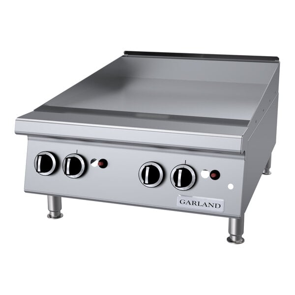 The heavy-duty Garland GTGG24-GT24M liquid propane griddle provides 56,000 BTU of cooking power across its 24" width to handle any cooking task! This griddle has a chrome plate that ensures higher heat retention and easier cleaning than standard steel griddle plates. It prevents sticking, browning, and flavor transfer, yielding a higher quality product overall. Great for eggs cooked sunny side up, fish, or fluffy pancakes, the chrome plate makes sure that these delicate foods won't stick or tear.
