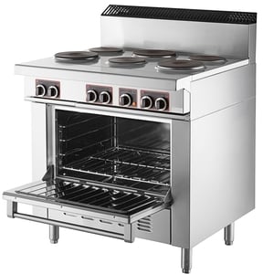 This Garland Sentry series commercial electric range's over heat protection reduces power to the individual element after 8 minutes if it is turned on without a pot or pan. Additionally, a cool touch door handle protects your kitchen staff from accidental burns.