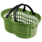 This lightweight basket weighs only 1.5 lb., making it easy for customers to carry. Additionally, its eye-catching green color is a great way to complement your establishment's existing decor! To save on space, this basket can be stacked when staged for customer use or when placed into storage. Plus, this basket's design prevents water buildup, so it can even be stored outside. Best of all, it is made with 10-60% recycled material, making it a green choice for your business! This basket is the perfect addition to grocery stores, delis, or bodegas.