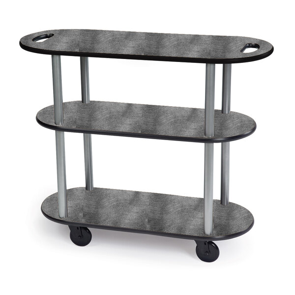 Geneva 36204-07 Oval 3 Shelf Laminate Table Side Service Cart with Handle Cutouts and Pewter Brush Finish - 16" x 42 3/8" x 35 1/4
