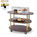 Entice your guests by showcasing specialty cheeses, mouthwatering desserts, breakfast pastries, and more with this Geneva 36303 3 oval shelf table side service cart! Featuring an 8 1/2" high acrylic roll-top dome with a decorative metal knob, this cart will keep your food items fresh while encouraging customers to partake in the dessert course by putting the spotlight on elaborately decorated cakes and pastries.