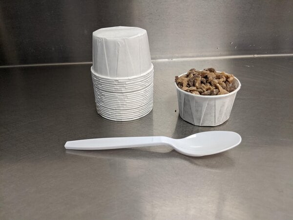 Use these for farmers' market sample. They are great for more sold foods. A soup or salsa would be too wet for the cup. Also very hot items aren't a good idea, they will burn the customer.