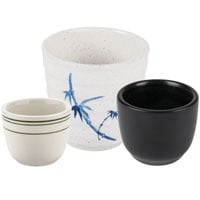 A subtle green and blue oriental design makes this 8" x 5 1/2" wavy edge melamine Japanese Traditional rectangular plate perfect for serving sushi, California rolls, or other Asian cuisine. The speckled tan background of this plate complements rather than competes with your restaurant's decor and food presentations.