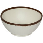 Add an exciting, textured look to any table setting with this GET B-302-DVG Pottery Market 24 oz. glazed grey melamine bowl with white trim. The Pottery Market Glazed line features a variety of different colored dishes that all boast a solid, bold rim to add a textured look to your dining presentation. This bowl boasts a grey body that draws attention to your perfectly plated creations. Made of durable melamine, this dish is ideal for most commercial settings, from quick service restaurants to cafes and hotel dining rooms. The break-resistant design is guaranteed to last while ensuring an upscale look that rivals that of chinaware. Use this bowl to serve your excellent soup, salad, or pasta, and the solid colored rim will frame each dish.