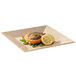 Bamboo Mel 10 inch square plate comes in a 12 case. Perfect for displaying all types of baked goods and different dessert menu items while also having an environmentally friendly product