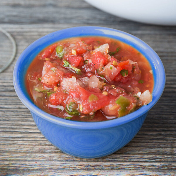 Bring the colors of the rainforest into your restaurant, school, hospital, or retirement community with these GET BC-70-PB Diamond Mardi Gras 7 oz. peacock blue melamine bouillons. Use these bowls for tasty soups, colorful side salads, as well as fresh fruits and vegetables. They're also great for holding dressings, condiments, and sauces. These bowls were built with your high volume venue in mind, as their durable construction is perfect for everyday use at your business. Plus, their peacock blue color is sure to rejuvenate your business's dishware and tabletops. br>