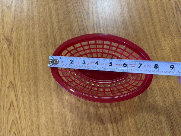 Serve your signature sandwiches, appetizers, or crispy french fries with this GET OB-734-R 8" x 5 1/2" x 2" oval red plastic fast food basket! Perfect for casual dining establishments, this food basket is a fun alternative to traditional plates and minimizes the waste associated with paper products. From cafes and family-style restaurants to sports bars and outdoor dining, this basket is a necessary addition for any inviting and playful foodservice environment. Designed by a name you can trust, this GET basket features a durable, break-resistant polypropylene construction that withstands everyday use at even the busiest foodservice locations.