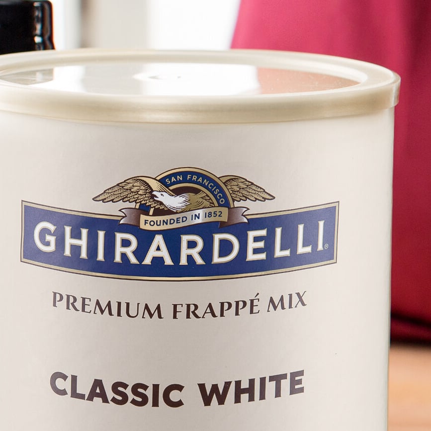 Customers will recognize and trust the Ghirardelli name when they see it in your cafe, coffee shop, ice cream parlor, or restaurant. Ghirardelli began with a young Italian chocolatier in the early 1800s and is now a brand widely known for its rich flavors. This sense of quality is the result of Ghirardelli's commitment to control all steps of the chocolate-making process, from roasting the cocoa beans, to refining the product for smoothness and well-balanced flavor. In addition, the company understands that sustainable sourcing and knowing the origins of the cocoa beans speaks to the quality of the finished product. No matter what drink you prepare, guests are in for a treat with this classic white frappe mix!
