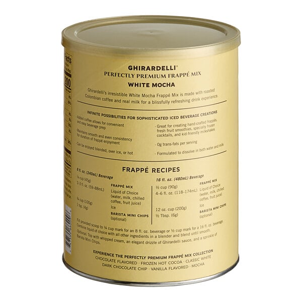 Customers will recognize and trust the Ghirardelli name when they see it in your cafe, coffee shop, ice cream parlor, or restaurant. Ghirardelli began with a young Italian chocolatier in the early 1800s and is now a brand widely known for its rich flavors. This sense of quality is the result of Ghirardelli's commitment to control all steps of the chocolate-making process, from roasting the cocoa beans, to refining the product for smoothness and well-balanced flavor. In addition, the company understands that sustainable sourcing and knowing the origins of the cocoa beans speaks to the quality of the finished product. No matter what drink you prepare, guests are in for a treat with this white mocha frappe mix!
