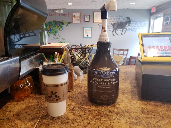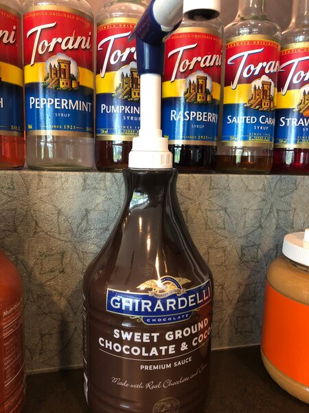 The Ghirardelli taste is exceptional and makes our shakes takes so much better. The problem is that the chocolate is so thick, that we can’t get every bit of the chocolate out of the container, which is a waste of product. We have to cut the container open to scoop out the remaining chocolate, which is quite a bit.