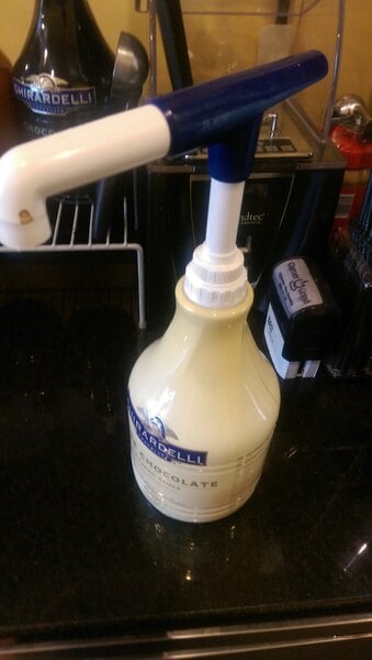 This sauce is ok for adding to shakes but I don’t recommend using it for garnish. The flavor is good but consistency is not. It’s slightly transparent and will not give you a beautiful white drizzle on top of shakes or desserts. It’s best used as a mixed in ingredient.