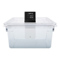 Streamline the sous vide cooking process in your commercial kitchen with this Globe polycarbonate lid. This lid is compatible with GSV-T56PC 14.8 gallon sous vide water tanks or with GSV-K56PC large sous vide kits to replace an original part, and it features a cutout design for use with Globe GSV18 sous vide immersion circulators (all sold separately). This item is made with durable polycarbonate for long-lasting, high-volume use.