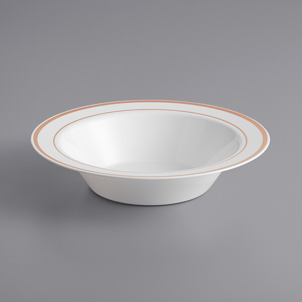 Visions 12 oz. White Plastic Bowl with Rose Gold / Copper Bands - 150/Case