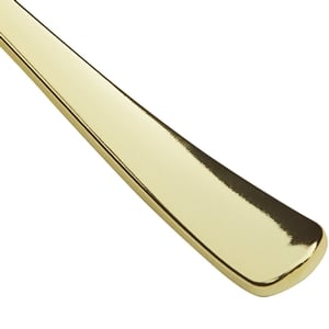The shiny gold finish and elegant handle also give this plastic spoon the appearance of regular silverware. With this Visions Classic 5 7/8" extra heavy weight plastic soup spoon, you can provide the perfect elegant dining environment at weddings, parties, and catered events, without the upscale flatware price.