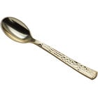 Featuring the look of a gold-plated spoon at a fraction of the cost, this Visions soup spoon is the ideal flatware for a variety of applications. Because this flatware is disposable, you won't have to waste any extra time washing large quantities of dishes. Easily add this spoon to the place settings at your banquet, party, or other catered event!