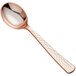 Featuring the look of a rose gold-plated spoon at a fraction of the cost, this Gold Visions soup spoon is the ideal flatware for a variety of applications. Because this flatware is disposable, you won't have to waste any extra time washing large quantities of dishes. Easily add this spoon to the place settings at your banquet, party, or other catered event!