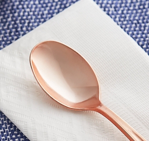 Featuring the look of a rose gold-plated spoon at a fraction of the cost, this Visions spoon is the ideal flatware for a variety of applications. Because this flatware is disposable, you won't have to waste any extra time washing large quantities of dishes. Easily add this spoon to the place settings at your banquet, party, or other catered event!