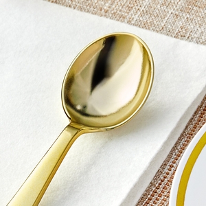 Featuring the look of a gold-plated spoon at a fraction of the cost, this Visions Skyline spoon is the ideal flatware for a variety of applications. Because this flatware is disposable, you won't have to waste any extra time washing large quantities of dishes. Easily add this spoon to the place settings at your banquet, party, or other catered event!