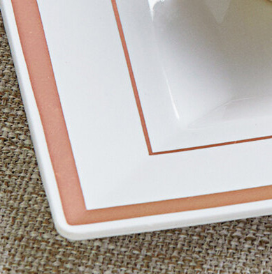 These disposable plates look like real plates..Very thick, durable plastic that could withstand hot food. Perfect for a quick clean up if you can't or don't want to use real plates. Would recommend 100%