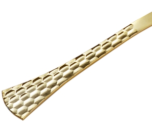The elegant, glossy gold finish and unique honeycomb pattern gives this plastic fork the appearance of regular silverware. With this Gold Visions heavy weight plastic fork, you can provide the perfect elegant dining environment at weddings, parties, and catered events, without the upscale flatware price.