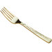 Featuring the look of a gold-plated fork at a fraction of the cost, this Visions Hammered fork is the ideal flatware for a variety of applications. Because this flatware is disposable, you won't have to waste any extra time washing large quantities of dishes. In addition, there is no longer any worrying about losing money due to expensive silverware accidentally being thrown away!