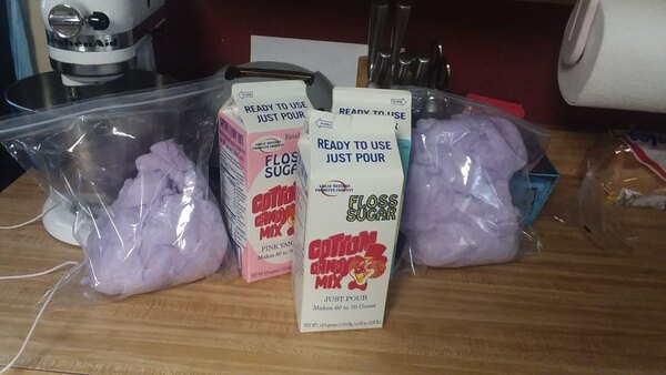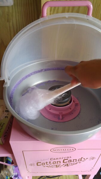 A really nice cotton candy floss that works great with our carnival machine. The sugar heats up quickly and spins into a light and fluffy cotton candy treat. Grape is so tasty.