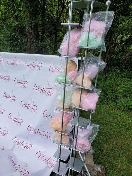 This cotton candy has a nice flavor and flosses well. I wish it were a little darker but it makes a nice compliment to the display.