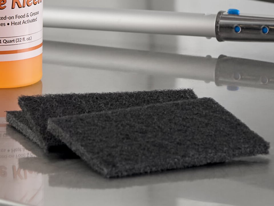 - Includes pads with abrasives that remove burnt-on food and grease