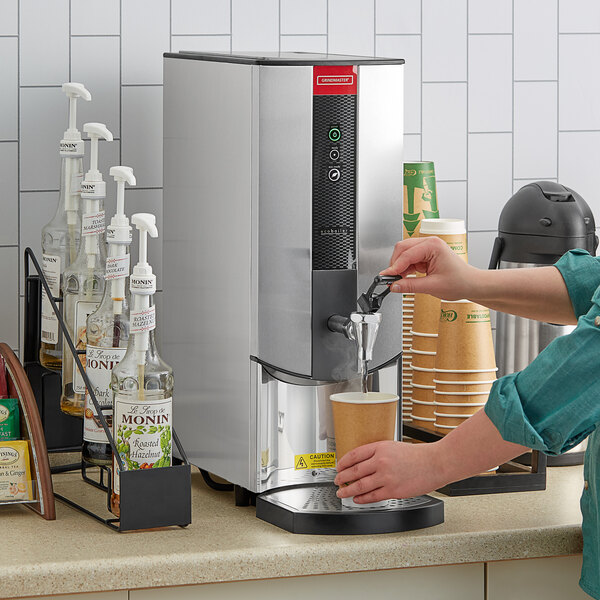 For a water dispenser with a compact footprint while providing an inexhaustible supply of hot water, this Grindmaster 2403-002 2.6 gallon tap-operated hot water dispenser is the perfect addition to your kitchen. While taking up minimal space, this tap-operated hot water dispenser holds 2.6 gallons of water at a constant temperature from 140-208 degrees Fahrenheit. Plus, it has an adjustable temperature with excellent temperature control. Easy to descale, this dispenser makes cleaning a breeze, so you can stay on top of removing any buildup, making it ideal for your busy coffee shop, cafe, or restaurant.