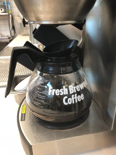 Thanks to its contoured glass body, this coffee decanter easily and securely fits on warmer plates so you're never serving lukewarm coffee. It can hold 10-12 cups of rich, piping hot coffee to keep the customers in your busy diner, convenience store, or family restaurant satisfied.