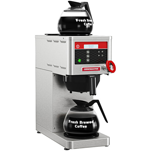 Easily keep coffee warm while continuing to brew a fresh pot with the Grindmaster B-3 PrecisionBrew digital automatic coffee brewer! Boasting one warmer below the brew basket and two on top, this reliable machine has room to hold three decanters (sold separately) of coffee at once to ensure you always have a supply of hot coffee for your customers.