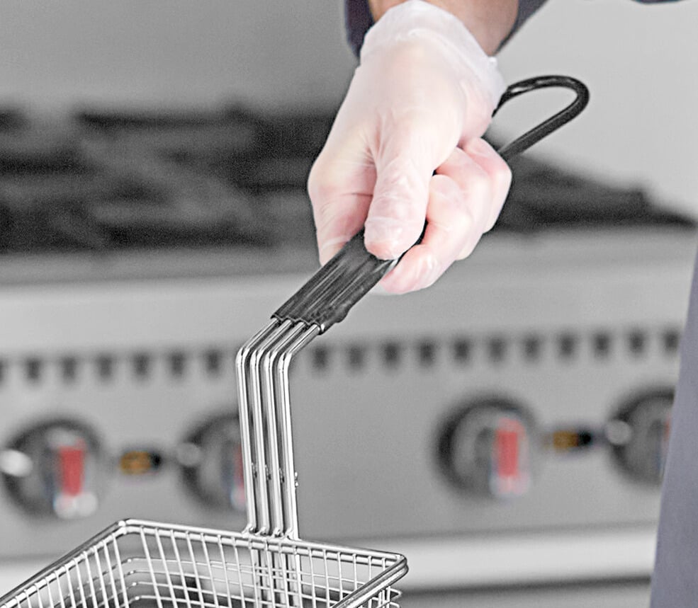 This fryer basket features a PVC-coated, cool touch handle design that gives a comfortable grip and prevents excess heat transfer. Even on busy shifts, you and your employees can keep frying without risk of burns or discomfort.