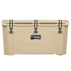 I love this cooler! This is a 75 quart tan extreme outdoor grizzly cooler. It's insulated well and comes with a sliding shelf on the inside. The handles are canvas and rubber.