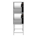 This unit is made of durable stainless steel with mirror-polished interior cavities. It has removable non-louvered side panels for easy cleaning and maintenance and rear panel vents for reduced water / spray ingress. Its hands-free, field-reversible doors feature continuous hinges and one-piece, replaceable seals, and their latches provide a positive closure. The doors also have hidden switches to shut off the generator and compartment blower when they are opened, protecting your staff from hot steam when checking on or retrieving food. It also includes removable stainless steel support racks and condensation collection trays for added efficiency. This model is easy to clean with a programmable delime feature that delimes its compartments at the push of a button.