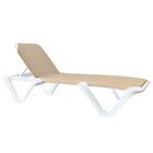Give guests at your hotel, resort, or poolside bar a place to kick back and relax with this Grosfillex Nautical adjustable sling chaise! This chaise lounge chair features an attractive white resin frame that adjusts easily for a quick poolside nap, relaxing with a drink, and anything in between, while its blue sling provides unbeatable comfort and resists mildew, mold, and fungi. Its commercially-rated design provides superior durability and stacks for easy storage, and since it's also UV resistant, this chaise resists fading and discoloration by the sun longer than retail-grade plastic furniture, providing multiple years of reliable use.