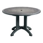 This table features a pedestal base with four large pronged legs for added stability. It also sports levelers that can be adjusted to balance the table on uneven surfaces. Additionally, this table comes with a built-in umbrella hole with a removable cap that can accommodate compatible 1 1/2" diameter umbrella poles (sold separately). This Grosfillex Aquaba round table will provide you with long-lasting quality and dependability, making it an excellent addition to your establishment.