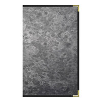 This menu cover boasts a sturdy interior construction, with clear interior pockets to keep your inserts in place. In addition, its textured vinyl cover creates an authentic brushed metallic appearance, making it great for establishments with a modern style. To keep it clean, simply wipe it down at the end of the day with a damp cloth to give every guest the best possible dining experience. Use this menu cover to present your offerings in a refined and organized way!