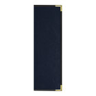This menu cover boasts a sturdy interior construction, with black leatherette trimmed pockets and smooth gold corners to help hold your inserts in place. Plus, it features a padded vinyl exterior with a stylish black finish that is sure to impress your guests! It is easy to wipe down at the end of every shift, allowing you to give every guest the best possible dining experience. Use this menu cover to present your offerings in a refined and organized way!