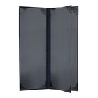 Display your menu in an elegant and professional manner thanks to this H. Risch, Inc. Oakmont 4 1/4" x 14" 4-panel menu cover with album style corners. Its stylish black color and smooth, padded design lend a classic touch and provide a great presentation when displaying your signature menu. Customers will notice the luxurious quality of this menu cover from the moment they pick it up. Plus, it is comfortable for guests to hold while they browse your offerings. Loose paper menus are a hassle to keep track of and easy to tear, but with this cover you can keep your menu looking neat for a professional presentation.