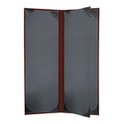 As a part of this Oakmont collection, this menu cover boasts a sophisticated design, adding a touch of class in any setting. Featuring a strong leather-like construction, it offers a superior alternative to ordinary plastic menu covers. Its sleek black interior creates a contrast to make your menu pop. This cover's booklet design provides 4 panels inside for displaying your menu. Black album style corners keep each insert in place while also protecting your paper from bending or tearing from heavy use. Allow for a 1/2" border on your menu sheet for optimal display results. For a quality menu cover you can depend on, look no further than this H. Risch, Inc. Oakmont menu cover!