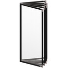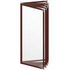 Present your menu offerings in style with this H. Risch, Inc. TE-10V Deluxe Sewn 4 1/4" x 11" brown 10 view vinyl menu cover with silver decorative corners and matte finish! With a colorful leatherette trim, this menu cover promotes a professional appearance in any setting. Its five pockets accommodate ten 4 1/4" x 11" inserts, making it perfect for presenting your signature dishes, happy hour specials, wine lists, or dessert menus. Plus, if your menu changes frequently, the inserts can be removed and replaced within seconds.